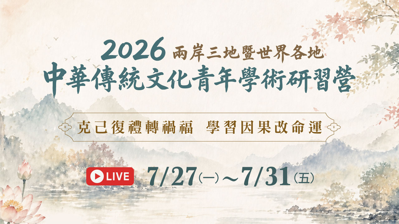 「兩岸三地中華傳統文化青年學術研習營」之舉辦,以弘揚 上淨下空老和尚提倡之倫理、道德及因果教育,幫助青年建立正確觀念,改造命運,轉禍為福為宗旨。
